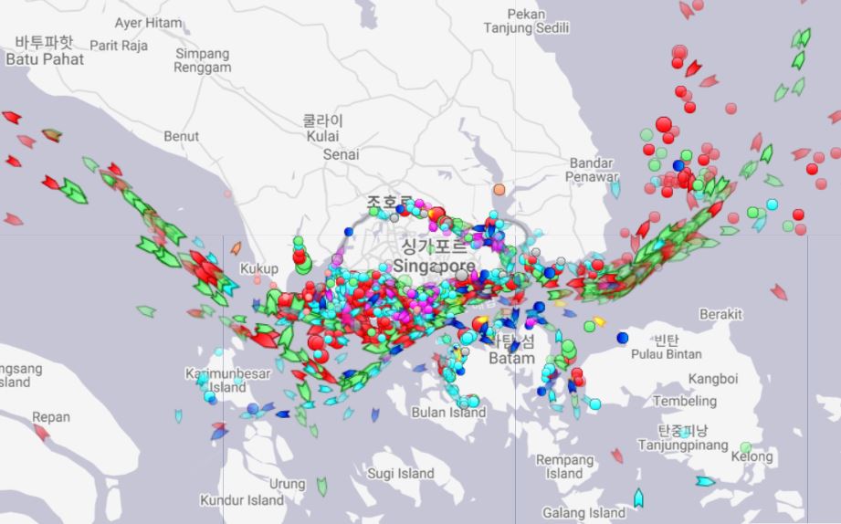 Marine Traffic 사진에서 볼 수 있듯이 싱가포르는 지정학적으로 엄청난 이점을 갖고 있는 나라입니다.