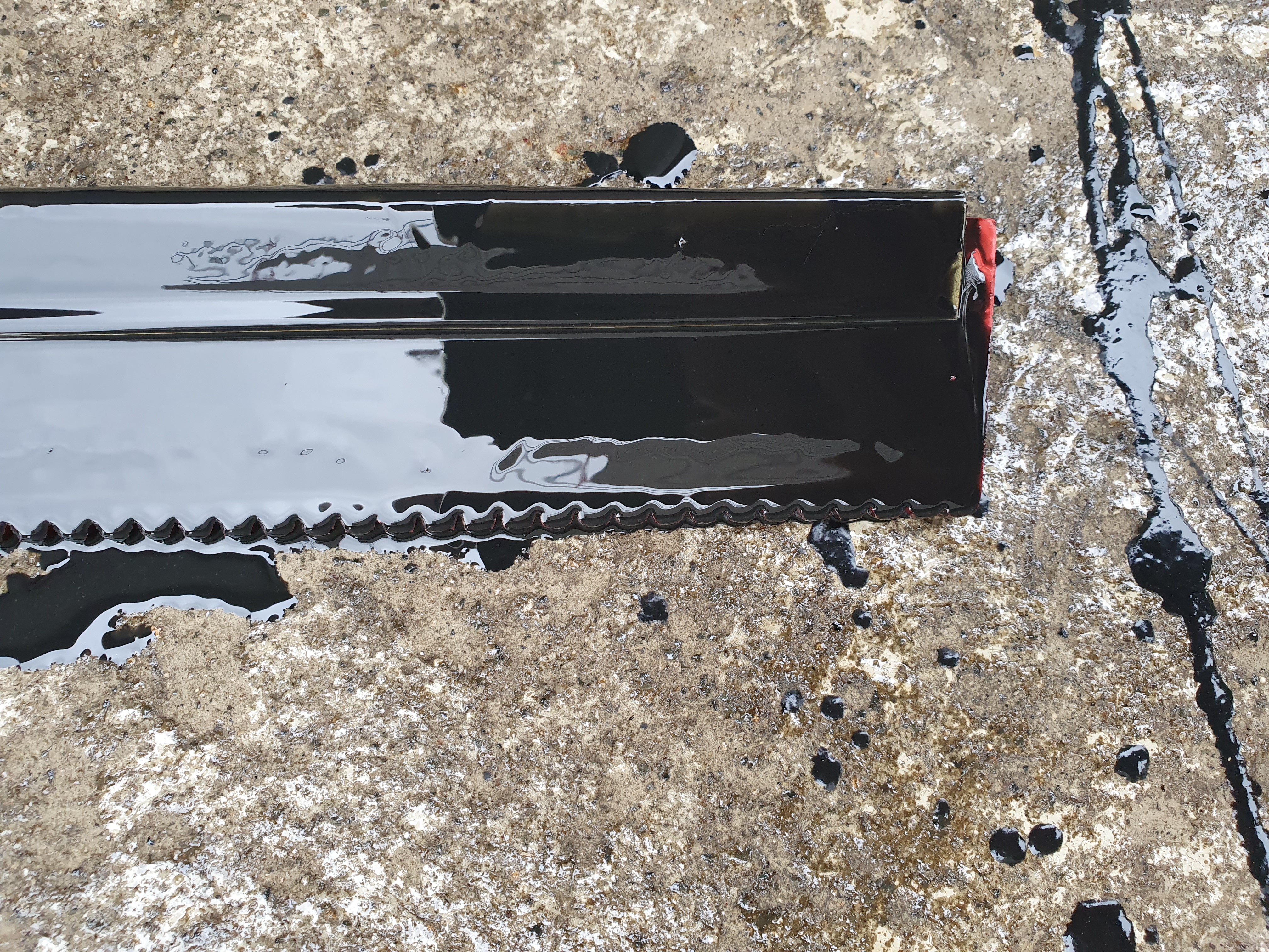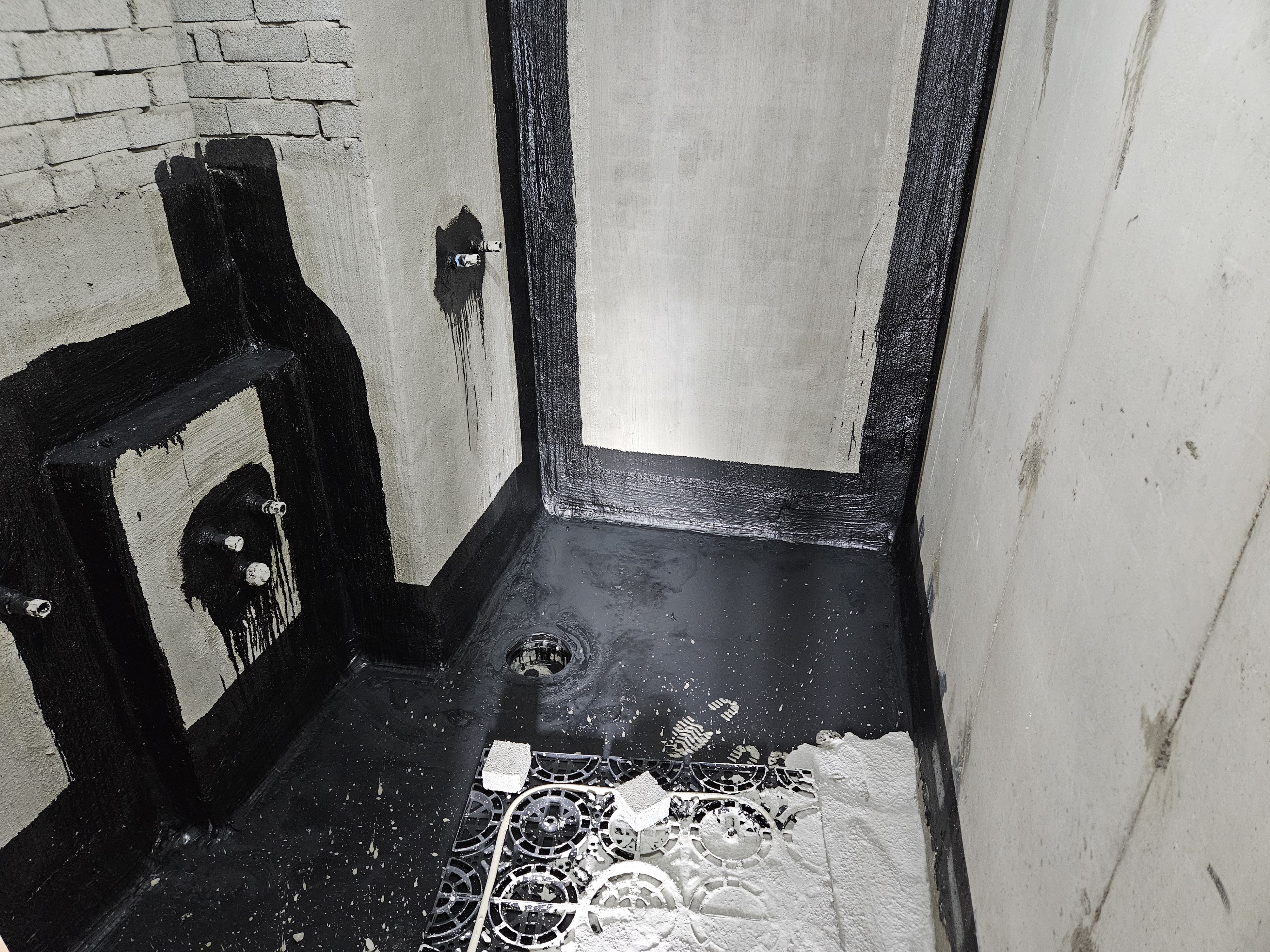 참고로 우레탄방수재와 수용성 고무화 아스팔트 방수재(대표적인 상품명으로는 고뫄스)는 다른 방수재입니다. 두 재료 모두 검은색을 띠고 있어 시공이 완료된 모습만 보고는 판단이 어렵기 때문에 반입되는 자재를 확인할 필요가 있습니다. (개인적으로는 우레탄방수가 수용성 고무화 아스팔트 방수재에 비해 같은 검은색이더라도 약간의 기름기?!가 더 있는 것처럼 보였으나 구분이 쉽지는 않습니다.) 이 글에서 다루는 방수재는 2액형 비노출 우레탄방수(논타르)이며, 설계도면을 확인 후 각 상황에 맞는 방수재료를 선택 및 시공하시면 됩니다.