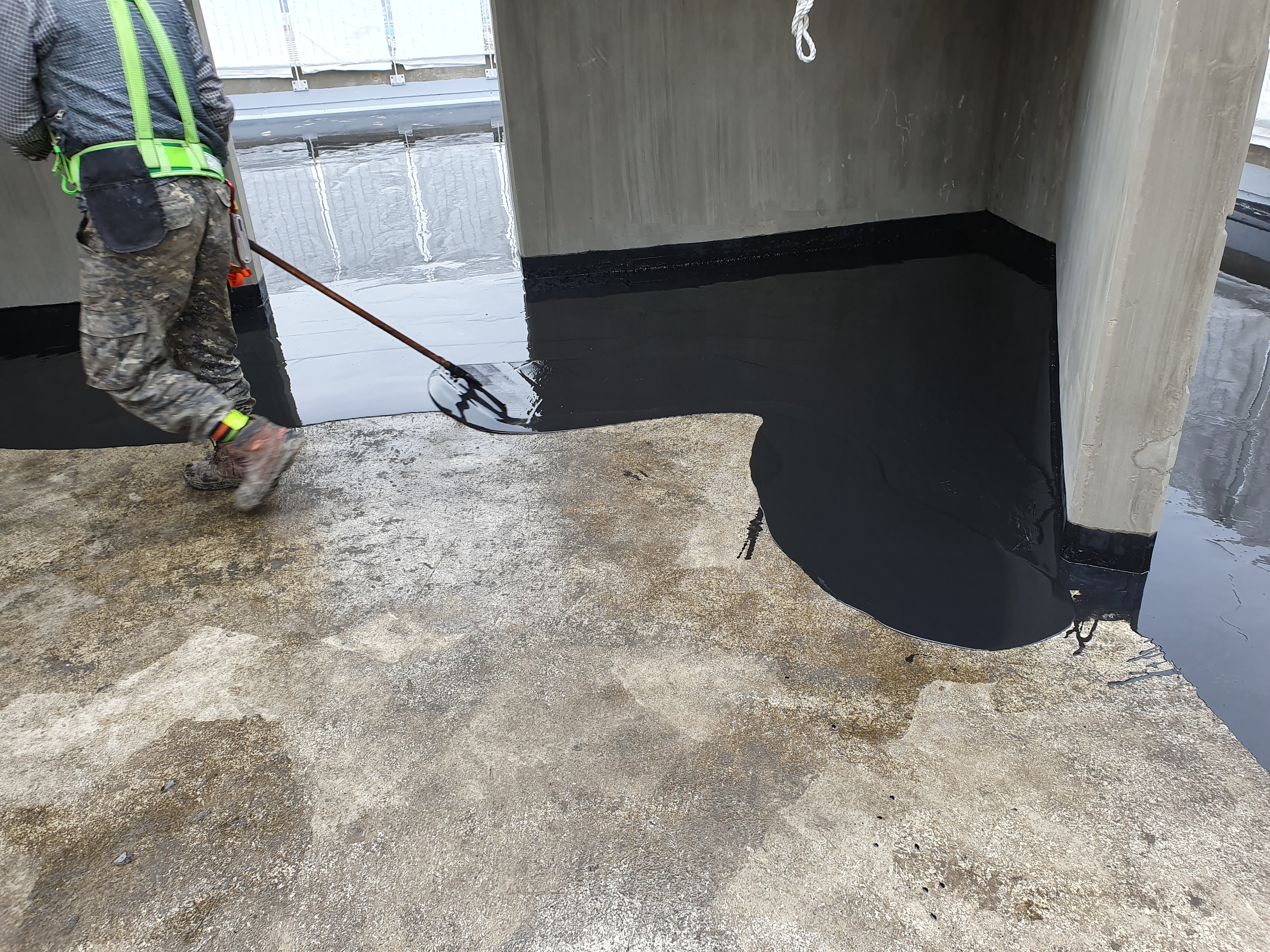 함수율이 확인되었다면 사진2와 같이 프라이머를 시공합니다. 프라이머는 콘크리트와 우레탄방수재 사이에서 접착력을 향상 시켜주는 역할을 합니다. 프라이머는 우레탄방수재의 부착력을 높이기 위해 시공되는 것이므로 우레탄방수가 시공되는 부위에만 프라이머 작업을 합니다.
