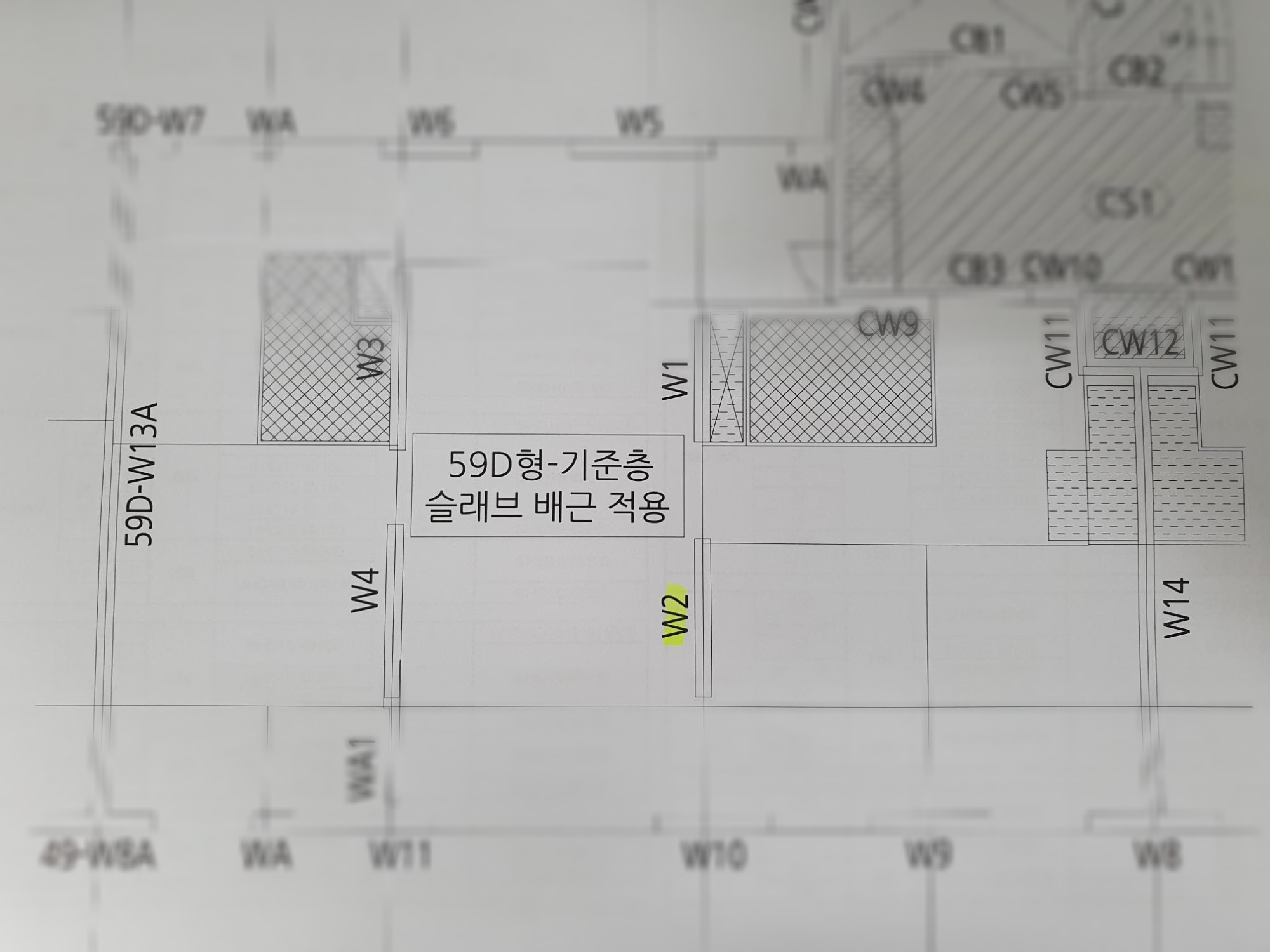 사진5에도 벽체 부호 W2를 확인합니다.