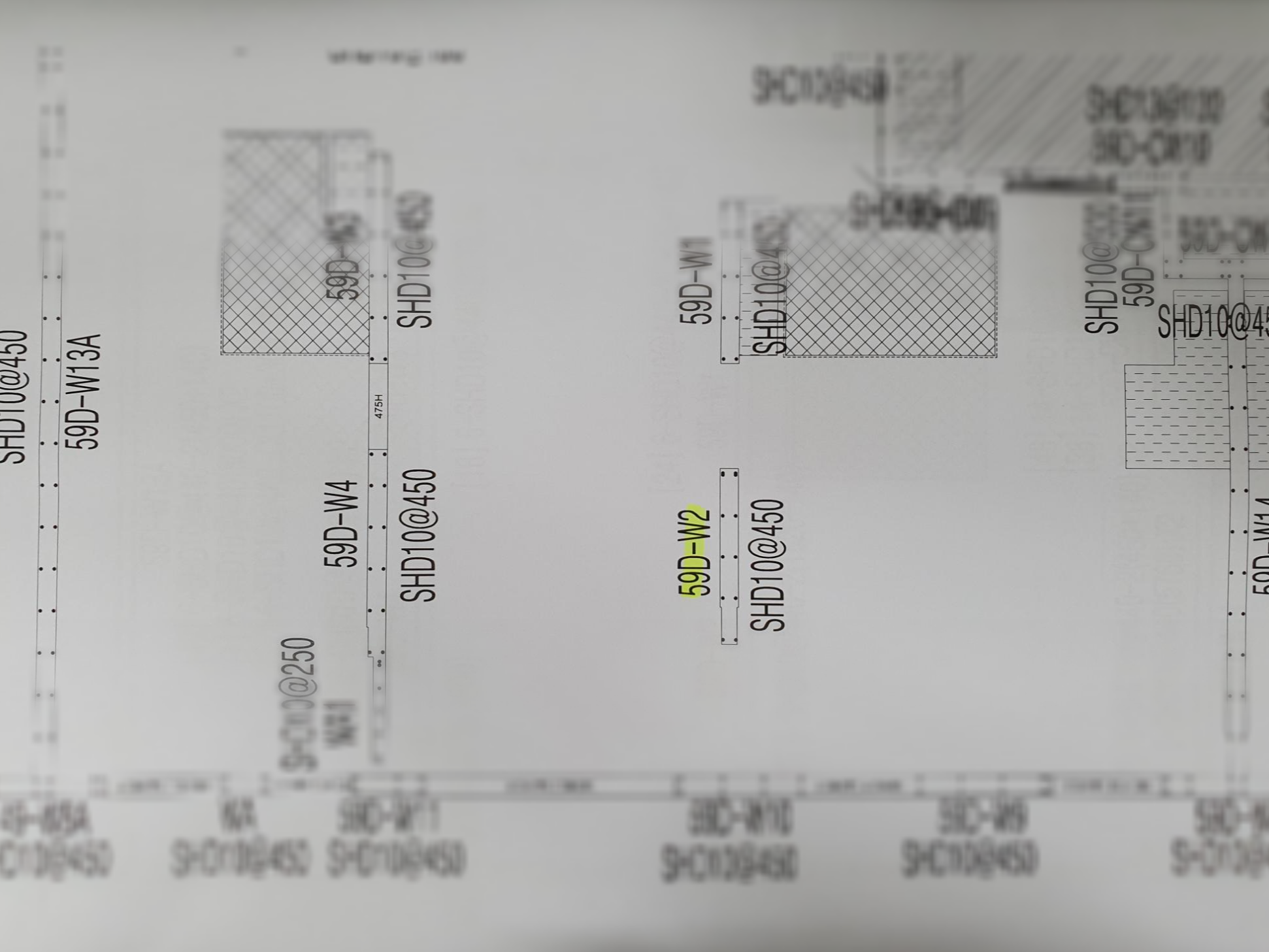 또 철근 shop도면에서는 59D-W2로 표기됩니다. 그러면서 추가적으로 SHD10@450이라 적혀있는 것을 볼 수 있습니다.