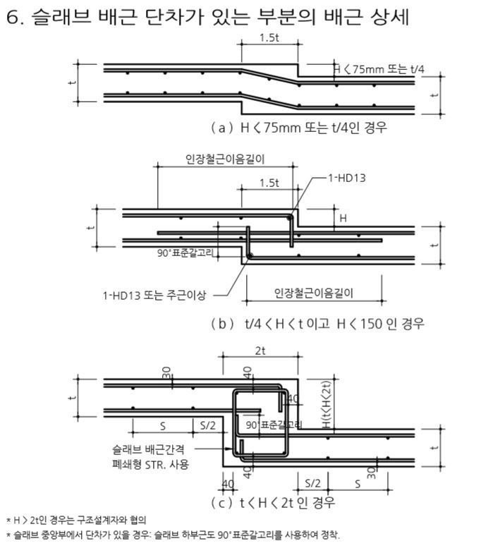 세 번째는 슬라브 단차가 있을 경우 배근 방식이 달라지는 것을 확인해야 합니다.